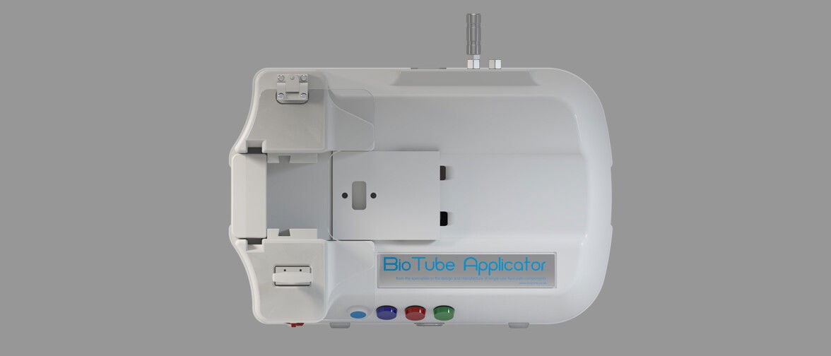 Машината BioTubeTM Applicator за монтиране на щуцери тръба-маркуч позволява лесно поставяне на конектори в широко разнообразие от тръбопроводи, включително от силикон и термопластични еластомери.
