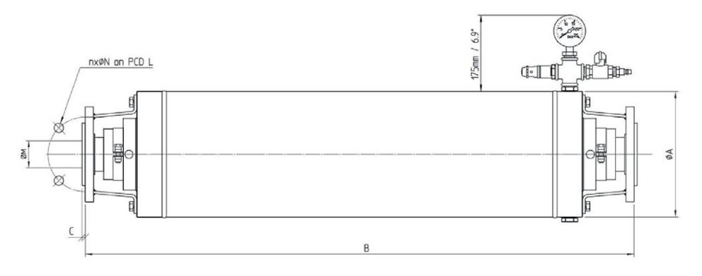 | Размери в мм (за DIN фланци) | Размери в инчове (за 150 ANSI фланци) | ||||||||||||||