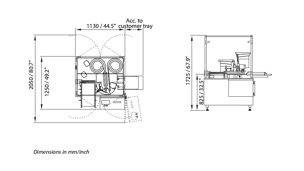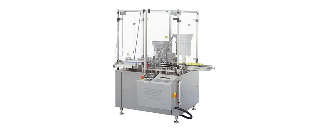 За пълнене, спиране и кримпване на капачки на флаконите, с обеми от микро-обеми до 100 мл. Интегрираните перисталтични пълнители осигуряват точно пълнене и предотвратяват скъпите препълвания, дори при много малки обеми на пълнене. В зависимост от обема на пълнене, машината може да обработва до 4500 флакона на час.