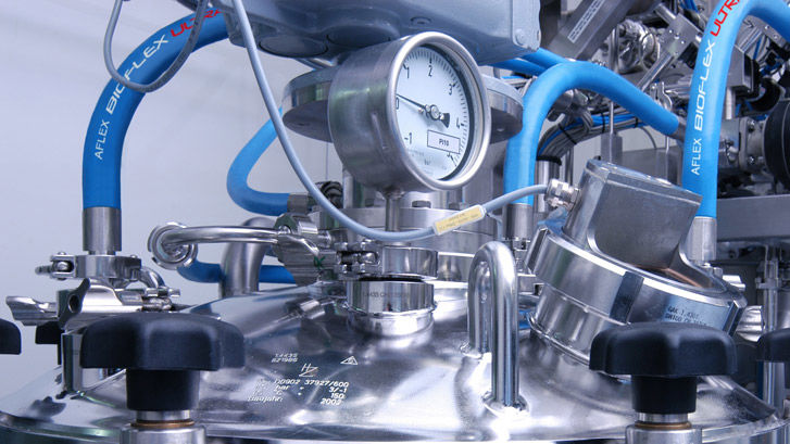 High-purity PTFE-lined Aflex Bioflex Ultra hoses support sanitary product transfer and GMP...
