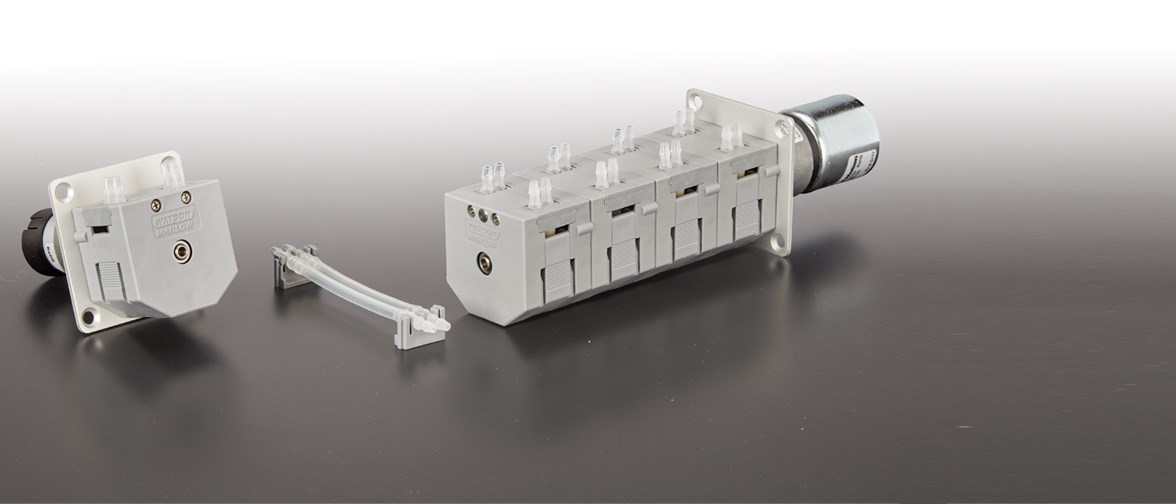 One to eight channel pumps for medium flows to 200 ml/min. Compact design and Luer connectors for 'fit and forget' applications.