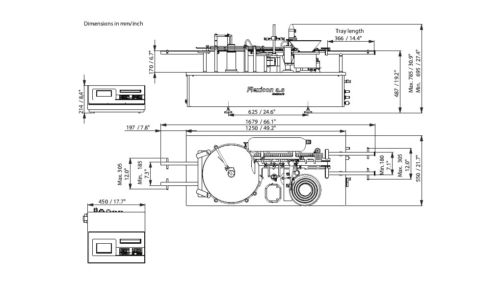 The FP50 can be customized to fit different sizes of trays at the infeed and the outfeed. The infeed tray can also be positioned on the front of the FP50 or the left side of the unit.