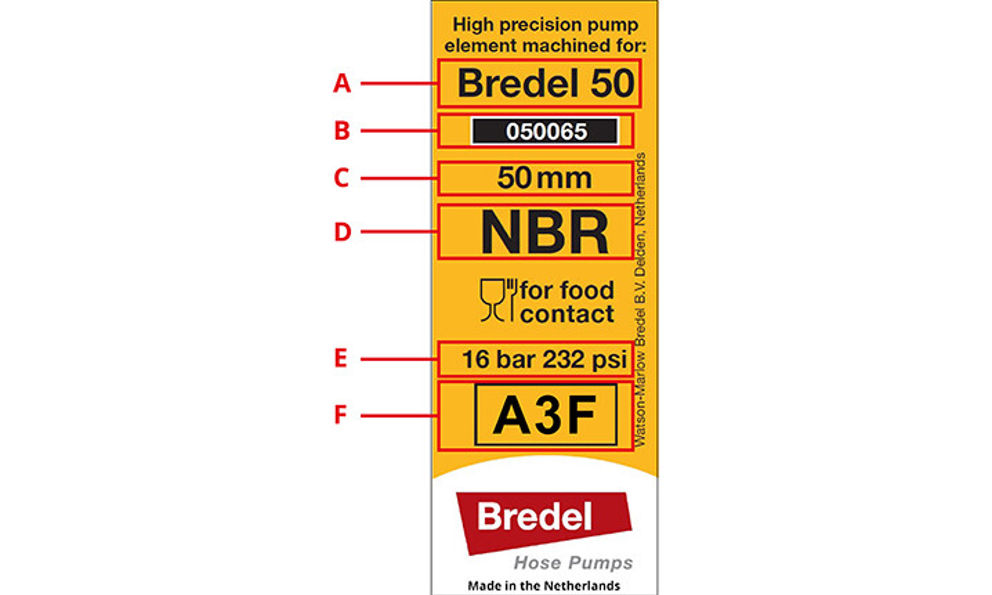 Your local Bredel sales office/distributor can advise the right hose for your application. For best pump performance use Bredel Genuine Hose Lubricant (NSF Non food Compound Program Listed, category H1)