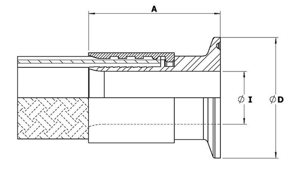 | Hose Bore | Fitting Size | Flange Diameter D | Hose Outlet Diameter I | Fitting Length A | ||||