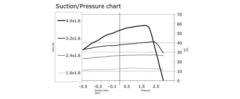• 400/M works with 1.6 mm wall thickness tubing and Luer connectors