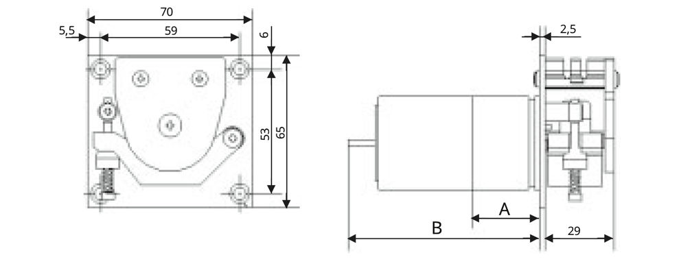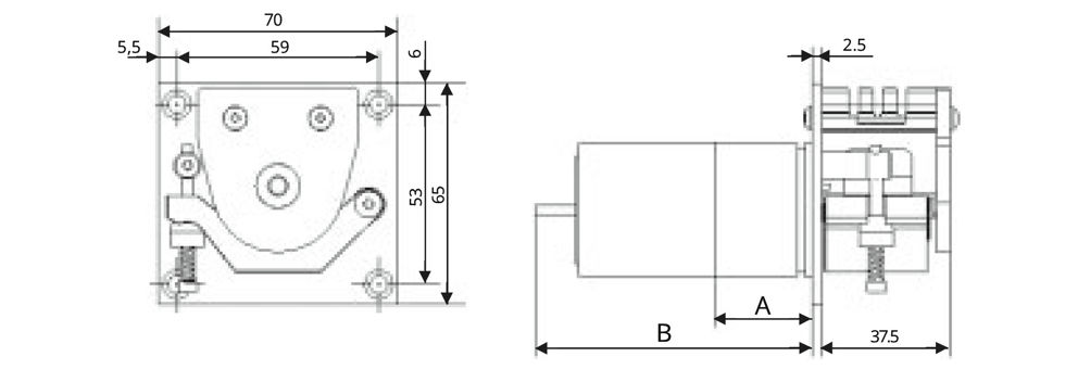 This simple pump uses tube elements and Luer connectors for easy fitting and replacement, particularly when mounted inside instruments. Tubing is fully enclosed in the housing. Supported by ball bearings, the pump shaft ensures long motor life. It is available as pumpheads only, or with four standard, compact DC motors as well as with stepper motors.