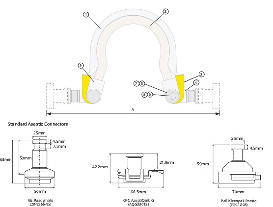 • Options of industry recognised aseptic connectors from CPC, PALL and GE