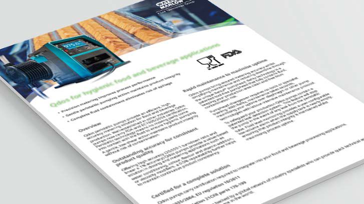 Qdos peristaltic pumps provide an efficient, high accuracy metering solution for food and beverage production. Well-established in other industries Qdos pumps now carry FDA and EC1935/2004 certification. Peristaltic technology means no moving parts come into contact with the fluid to ensure hygienic pumping. A gentle, low-shear action maintains product integrity without risk of contamination.