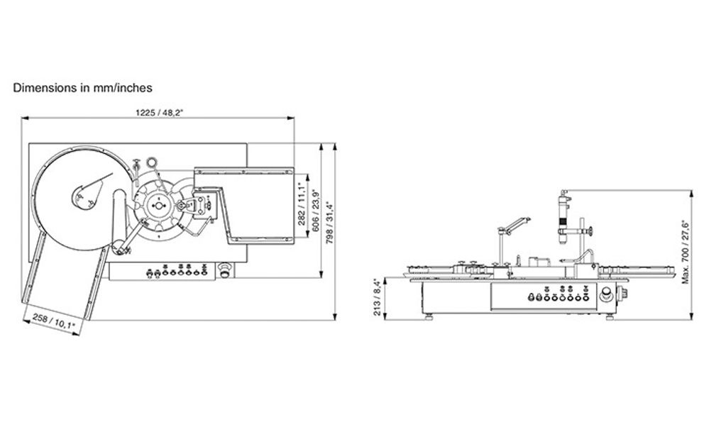 • Filling and capping up to 1,200 bottles per hour, with diameters from 12 mm to 50 mm
