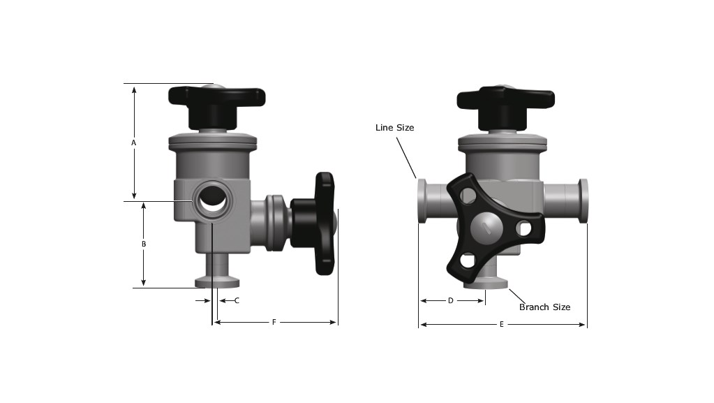 | BC08-125-1 | Weirless valve 0.75”, Block & Bleed, 316L Clamp-end inlet, Clamp-end outlet, 3.75” Face-to-Face & 0.5” bleed valve with clamp-end outlet, 20 micro‑inch Ra surface finish, electropolished and passivated, includes body/actuator clamp |