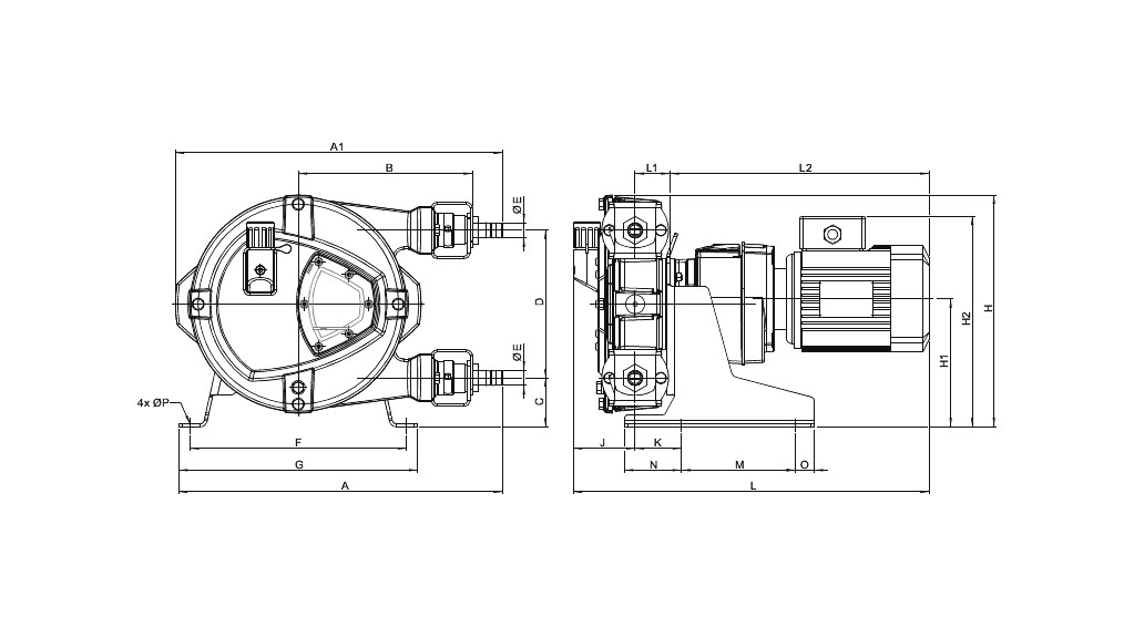 Type A A1 B C D ØE F G H H1 H2max J K Lmax L1 L2max M N O ØP