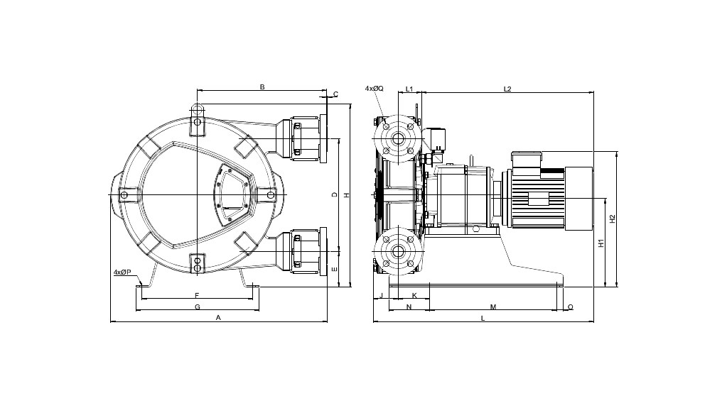 Type A B C D E F G H H1 J K Lmax L1 L2max M N O ØP ØQ R