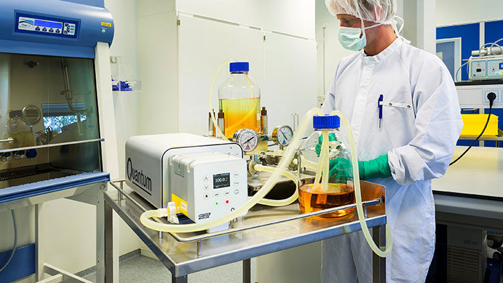 Nuestra familia de bombas peristálticas cumple una amplia gama de requisitos, desde aplicaciones con equipos de sobremesa hasta producción a gran escala. Las funciones satisfacen las necesidades del proceso y permiten lograr una integración completa con otros equipos de proceso. Esto permite escalar el proceso completo utilizando en todo momento la misma tecnología y la misma validación.