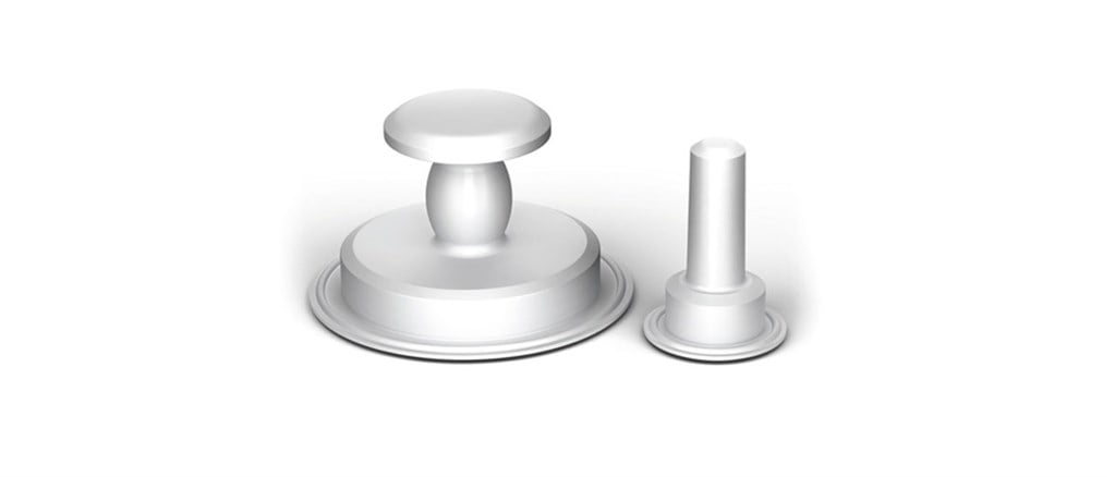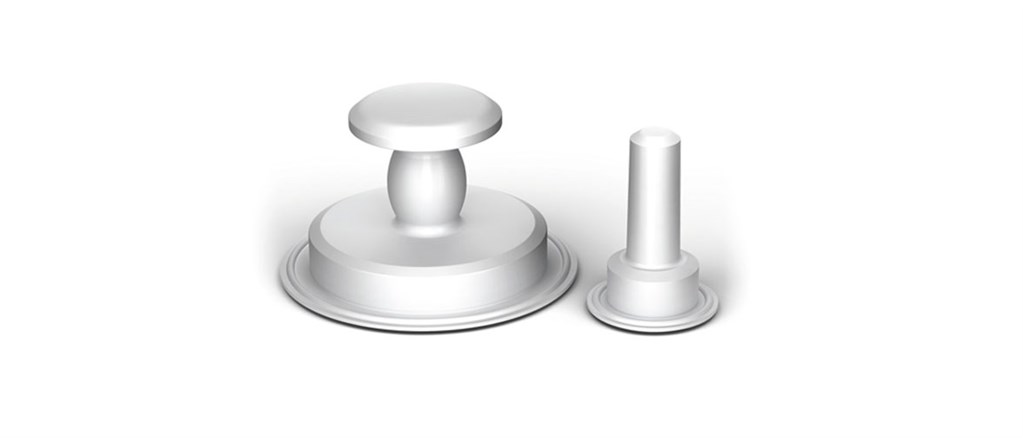 Diafragmas de válvula. Silicona de grado médico disponible en acabado blanco o transparente. Versión disponible con tratamiento de superficie de parileno.