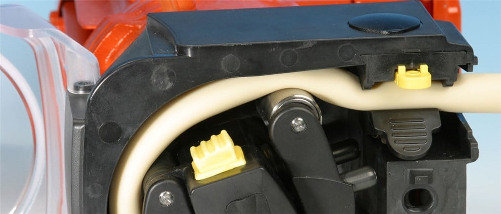 La tête de pompe 520REL pour éléments de tube LoadSure fonctionne à une pression pouvant atteindre 2 bars (30 psi) et permet un débit allant jusqu'à 3 500 ml/min.
