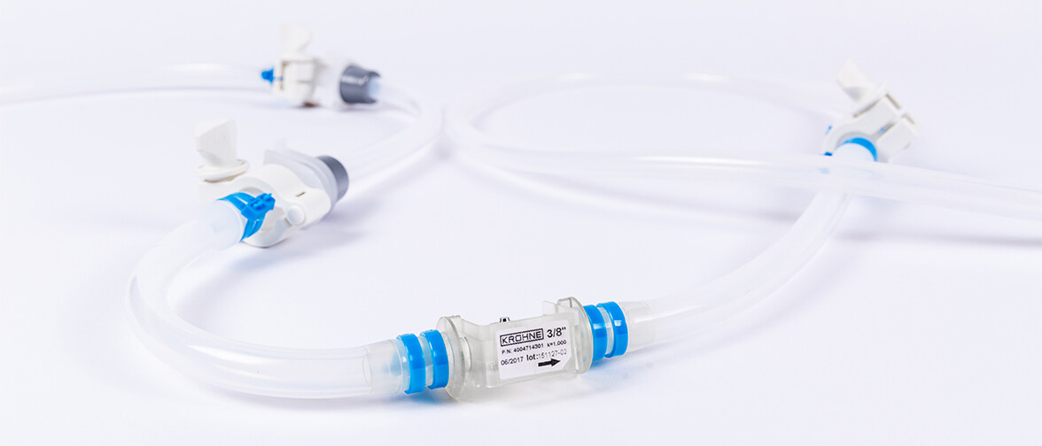 Zabezpieczenie procesu poprzez dokładny pomiar natężenia przepływu cieczy za pomocą przepływomierza elektromagnetycznego KROHNE FLEXMAG 4050 C®. Inne przepływomierze wykorzystujące technologię ultradźwiękową zależą od właściwości płynów, takich jak ciśnienie, temperatura i lepkość. Dzięki pracy w oparciu o zjawiska elektromagnetyczne i precyzję produkcji węża przepływowego, przepływomierz FLEXMAG zapewnia wysoce dokładny pomiar z wyjątkową powtarzalnością. Zapewnia całkowicie stabilny, bezpośredni i dokładny pomiar przepływu płynu bez zmiany z czasem. Przepływomierz jest wyposażony w jednorazowy, biokompatybilny i przystosowany do sterylizacji promieniowaniem gamma wąż przepływowy, która łatwo integruje się z niestandardowymi podzespołami jednorazowymi. Stanowi część szerokiej gamy akcesoriów i jest kompatybilny z: